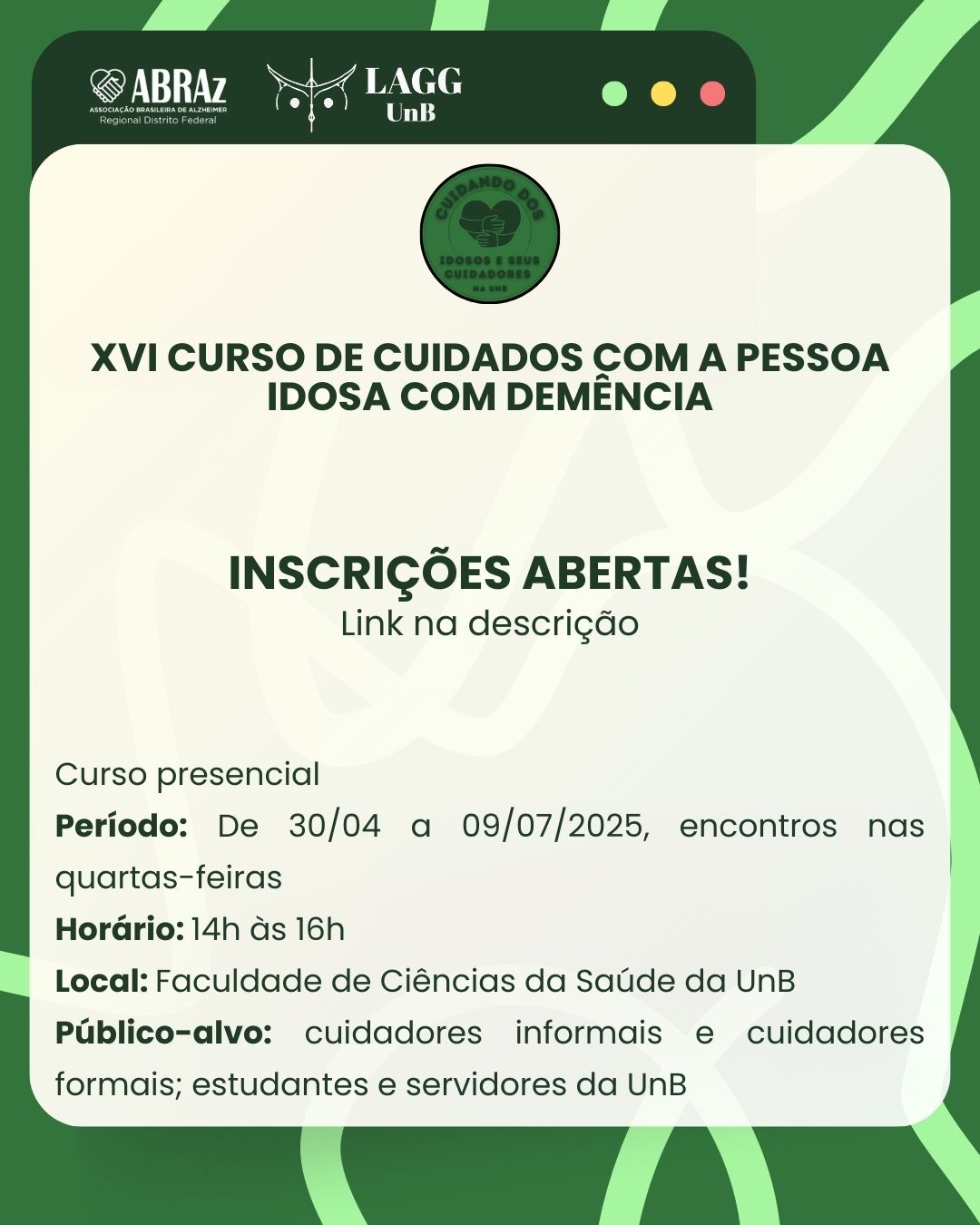 O curso de cuidadores retorna mais um ano para a sua XVI edição. Ela acontecerá no período de 30/04 a 09/07/25.